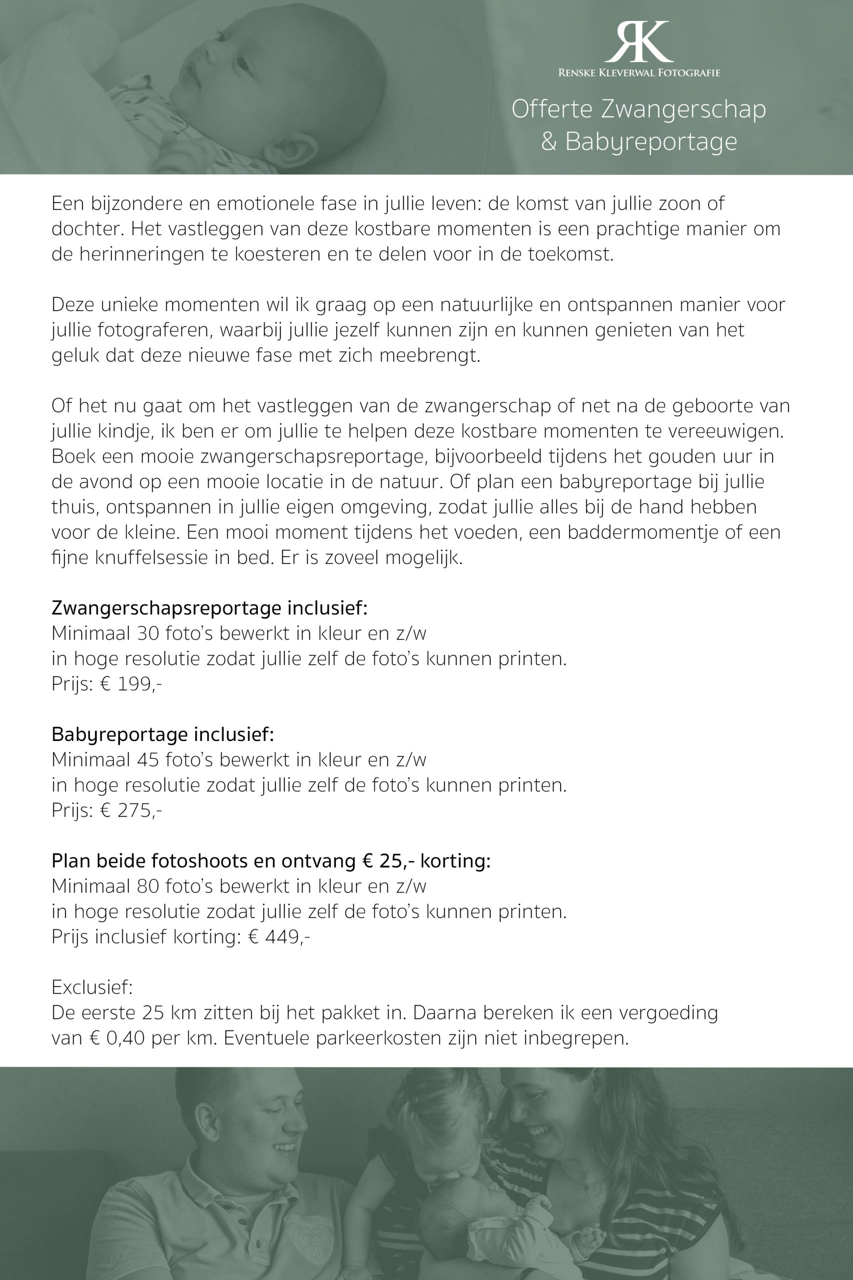PrijzenZwangerschap & Babyreportage Fotografie BedrijfsfotografieBruidsfotografieDag in het levenGeen categorie Prijzen Zwangerschap & Babyfotografie Fotoshoot Benieuwd naar mijn werk? Bekijk mijn Portfolio!